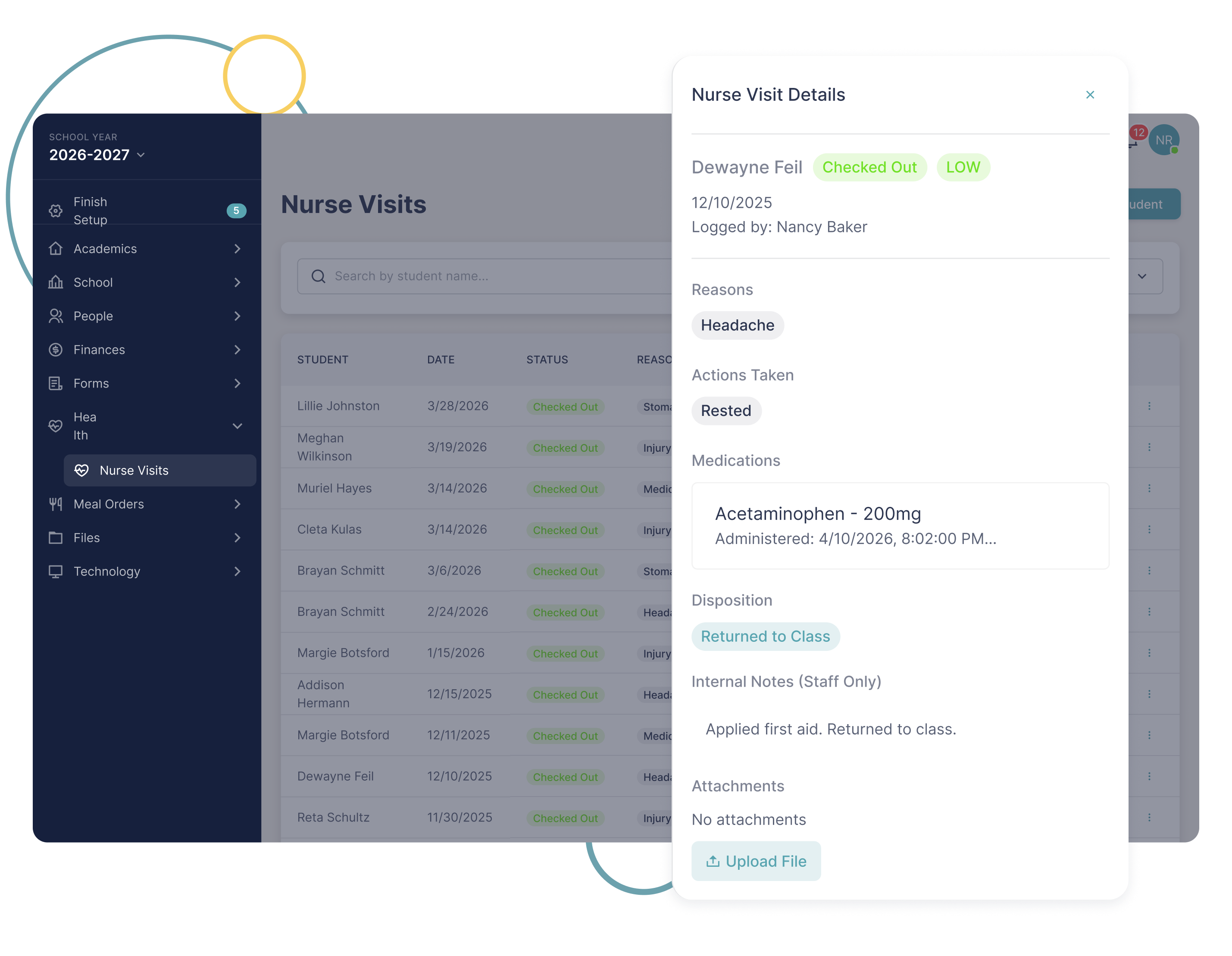Orbital's student health management system helps schools track nurse visits, medications, allergies, immunization compliance, and wellness data inside the student record.
